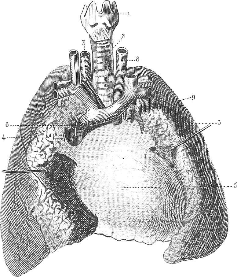 Pl. 139, fig. 32, the lips of the incision are separated by means of two double tenacula: 1, sternal, 2, clavicular portion of the sterno-cleido-mastoid muscle; 3, stern o-thyroid muscle; 4, omo-hyroid do.; 5, thyroid gland, 6, trachea; 7, carotid artery; 8, inferior thyroid artery; 9, laryngeal nerve and branches; 10, cellular tissue.