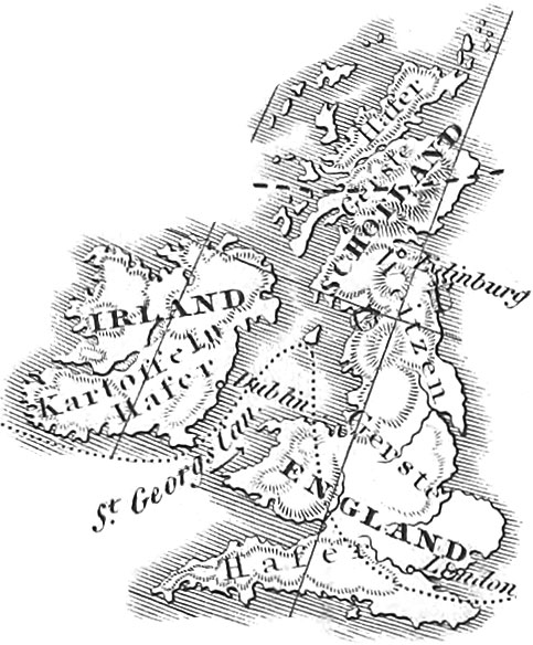 In conclusion, the chart presents the height of numerous points above the level of the sea, expressed in French toises. The figures at various points of the ocean indicate the depth in fathoms of six feet. Remarkable inequalities in the bottom of the sea are indicated by shaded lines; an illustration may be seen on the map extending from the west coast of Sweden through the Atlantic Ocean, to the West of Great Britain, France, &c., where we observe such numbers as 250 and 70,300 and 65,140 and 70, close together, indicating a very sudden change in depth. (These general remarks, in explanation of the physical chart of Europe, apply equally to the physical charts of Asia, Africa, and America.)