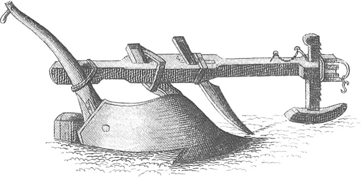 In pl. 29 ploughs of different construction and for various purposes are represented. Fig. 1 is a swing-plough in use in Belgium, the share and mould-board of cast-iron, and forming an uninterrupted and continuous curve; fig. 2 is a Brabant plough, also of cast-iron, which runs very steadily and may be set to cut deep or shallow, narrow or wide furrows; fig. 3 is a Flanders cultivating plough; fig. 4 is a Belgian plough, used for breaking up sod-land; fig. 5 is a Bohemian plough; fig. 6 is a form of subsoil plough or deepener, for increasing the depth of the soil and moving the subsoil; fig. 7 is a shovel plough, for cultivating growing crops; fig. 8 is a small plough, used also for cultivating and hilling potatoes and other crops; fig. 9 represents a plough so arranged as to keep the furrows without the aid of the ploughman; fig. 10 is an old Thuringian plough; fig. 11 is the so-called champion plough, with the guide wheels of unequal diameter, the right wheel running in the furrows; figs. 12 and 13 are right and left hand views of a German plough, which nearly resembles the Belgian; fig. 14 is a simple form of subsoil plough, which breaks up the subsoil without bringing it to the surface; fig. 15 is a hand plough, for working between the rows of seed beds; fig. 16 is a plough with wheels behind the sole, to diminish the friction upon the subsoil; fig. 17 is a light plough, used for covering stubble before winter.