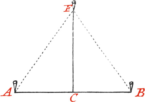 Plant the Staff C in some Place from whence it may be easy to measure the Distance in a right Line from it to the Places A and B.