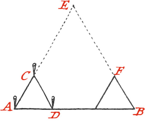 Measure 30 Feet upon the Line AB, from A to D, where plant a Staff: then take 2 Lines, each 30 Feet long, one of which fasten to the Staff D, and the other to the Staff A, and stretch them ’till their Ends join in the Point C, where plant another Staff.