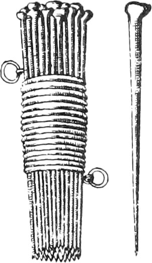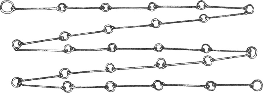 The Chain is composed of several Pieces of thick Iron or Brass Wire, bent at the Ends, each of which is a Foot long, and are joined together with little Rings.