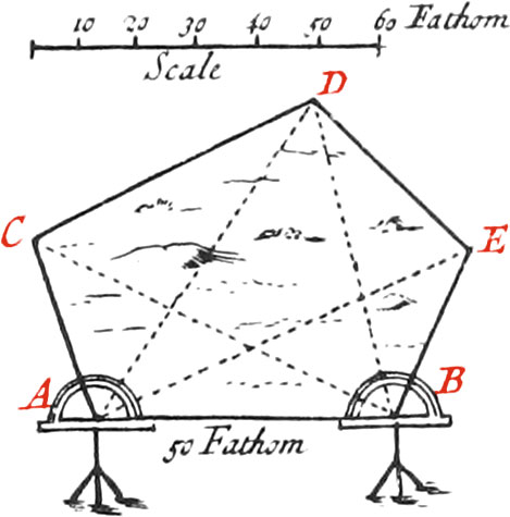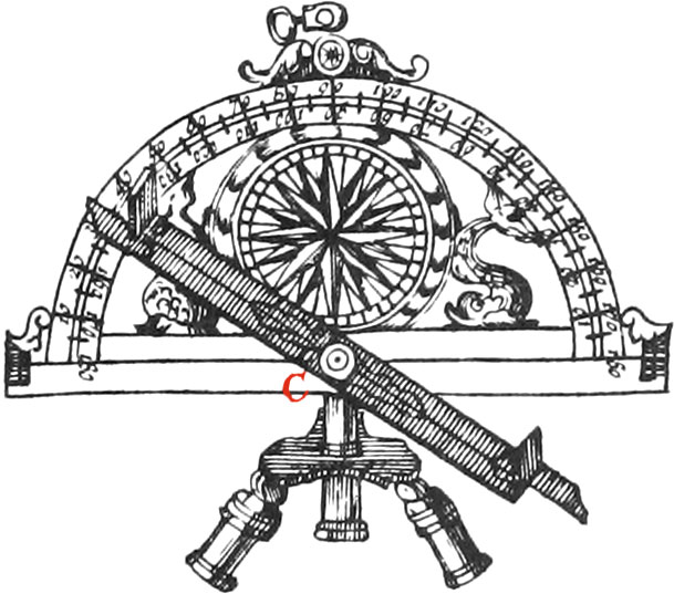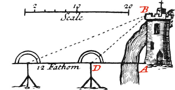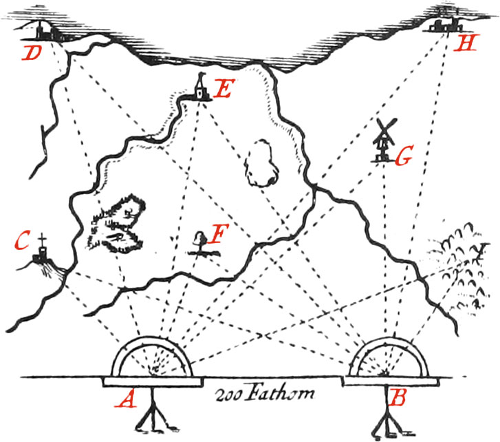 The Semi-Circle I, carries Telescopes for seeing Objects at a good Distance, and has the Degrees of it’s Limb divided into Minutes, by right-lined or curved Diagonals, as in the Quadrant before-mentioned.
