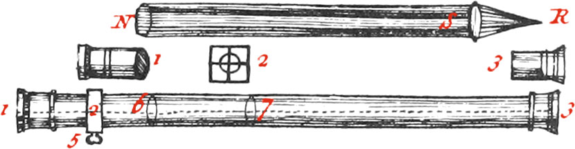 These Telescopes have two or four Glasses, and have a very fine Hair strained in the Focus of the Object-Glass, serving for a Sight.