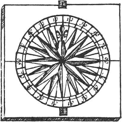 A Man by means of this Instrument, and a Map, may likewise go to any proposed Place, at Land, without enquiring of any body the way; for he need but set the Center of the Compass, upon the Place of Departure, on the Map, and afterwards cause the Needle to agree with the Meridian of this Place upon the Map: then if he notes the Angle that the Line leading to the Place makes with the Meridian, he need but in travelling keep that Angle with the Meridian, and that will direct him to the Place desired.