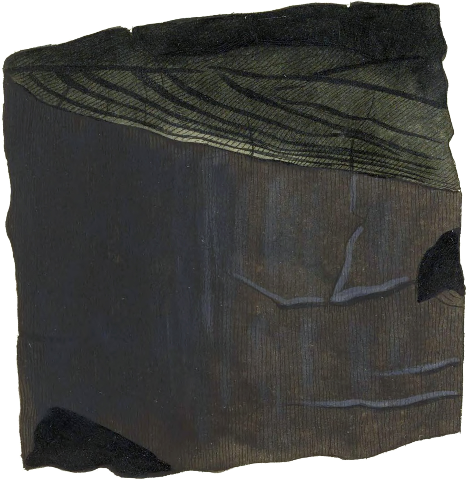 This is found near the mouth of the Ouse, ten miles from Brighton, Sussex, and is of the same kind as the Surturbrand of Iceland. Near the surface of the ground its changes are somewhat different from those of the foregoing, as it is less resino-bituminous, and more oxy-carbonized. It is found in large masses resembling compressed stumps of trees, and is of a most perfect black like Jet; but if compared with good Jet, has rather a gray cast. Sir Joseph Banks gave me a piece near two feet long, and above one in the broadest diameter; the compressed diameter is a little above two inches. The transverse section shows the concentric formation of the wood, and the sides crack and flake off more or less in circles. It is more brittle than Jet, and, being less bituminous, is not rendered electric by friction. It is often so much impregnated with Pyrites that it is apt to fall to pieces with the change of the atmosphere, even when preserved in cabinets.
