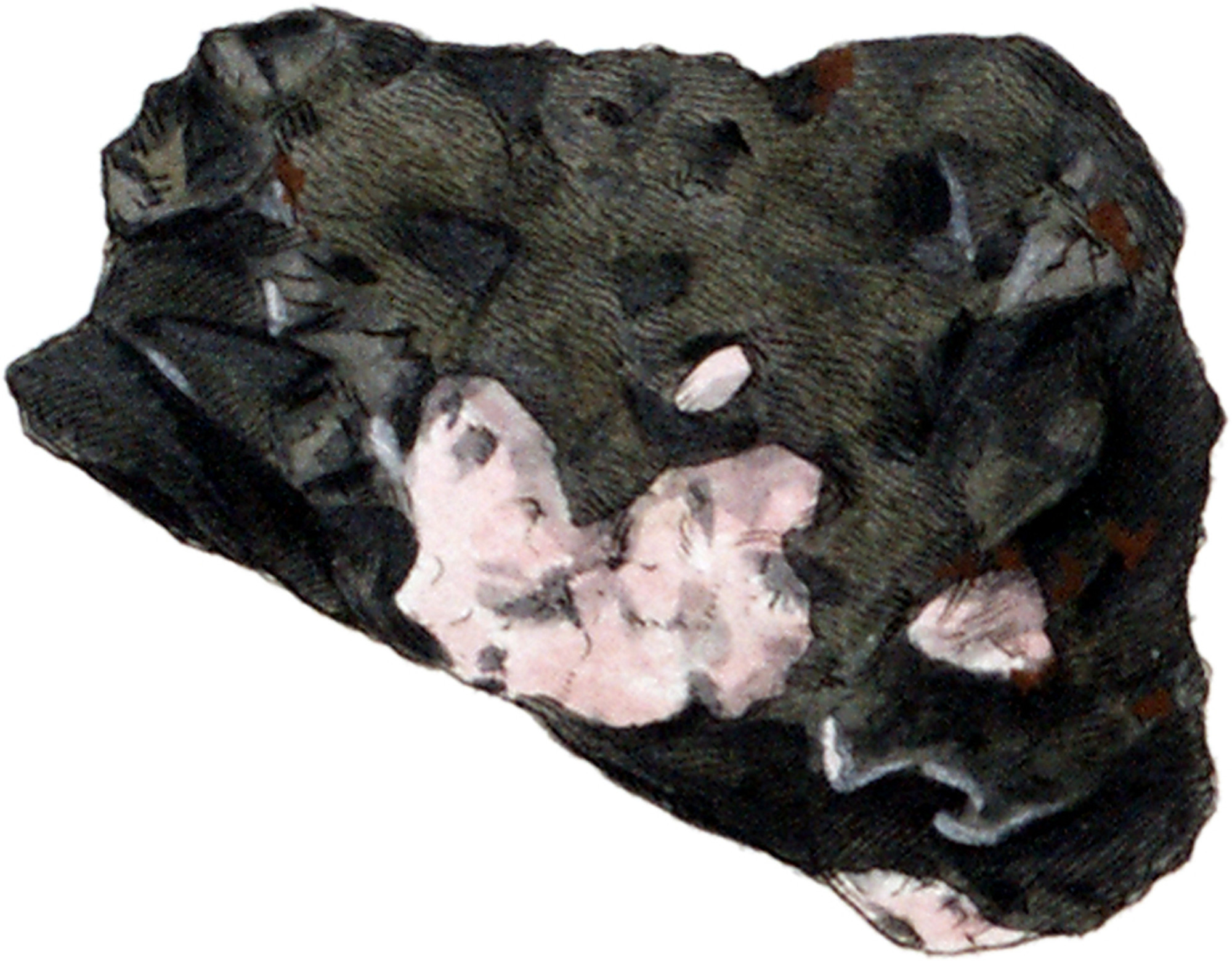 This ore of Manganese is found in largish grains among Blende and Copper Pyrites in the rose-coloured Carbonate of Manganese of Nagyag, that serves as a matrix for the ores of Tellurium and Gold. It may be distinguished from other grey metallic minerals by its powder, which is greener than the mass, and by its behaviour under the blow-pipe, giving out Sulphur, then becoming rustyblack without melting; it tinges nitrous borax purple; its specific gravity is 3.950: it is said by Haüy to be divisible into a rhomboidal prism, which may be subdivided in the direction of the diagonals of its transverse section. Klaproth and Vauquelin have both analyzed this ore, and both mention Oxide of Manganese as a constituent part of it; but it appears inconsistent with the present ideas of the combination of Sulphur with metals, that there should be oxygen present in a sulphuret, and the metallic lustre of the fresh fracture speaks also against the probability of its being an oxyde.