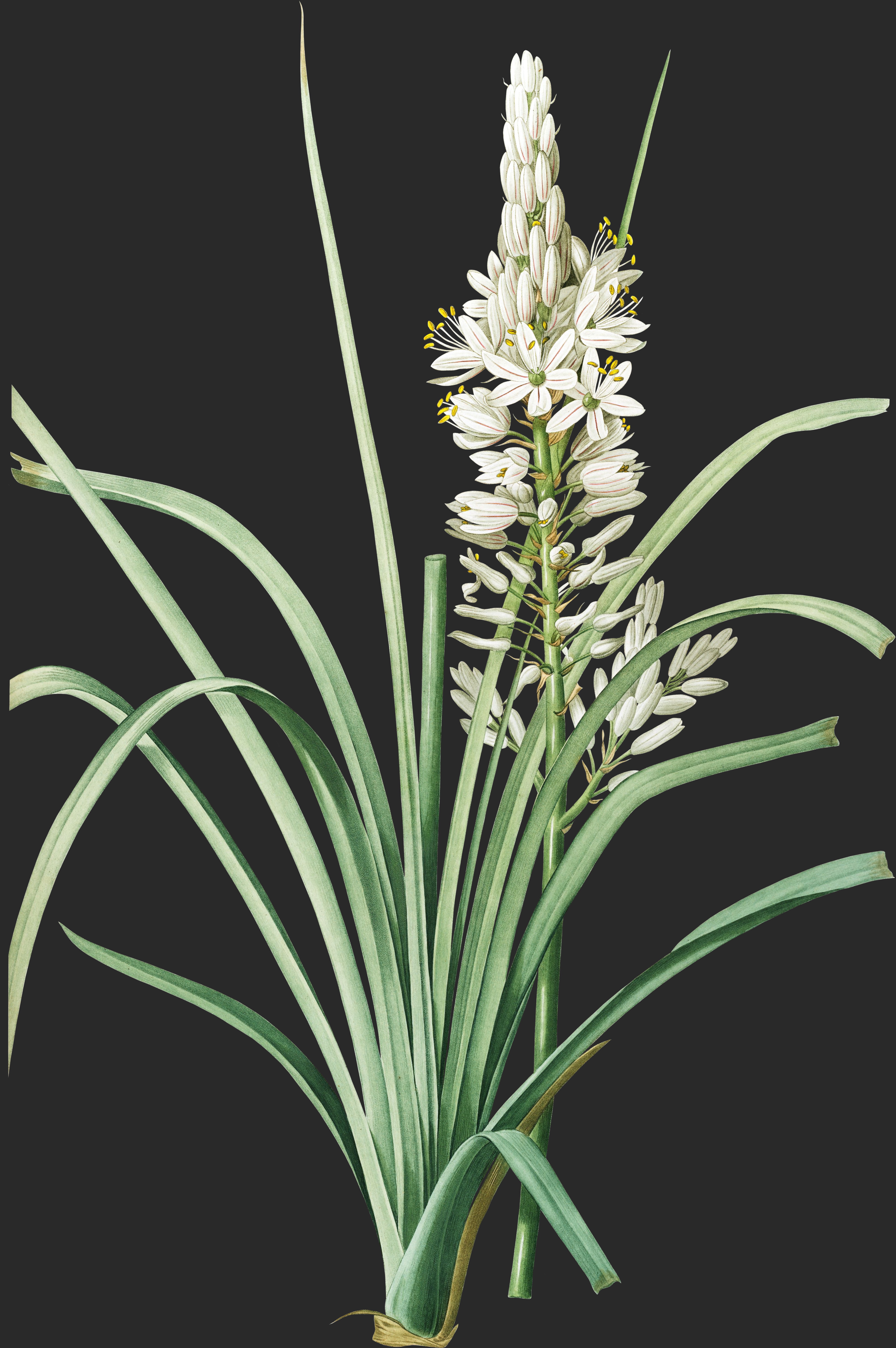Le périgone est divisé, jusqu’à sa base, en six lanières très-étalées, longues de près de deux centimètres, ovales oblongues, obtuses, égales entre elles, un peu concaves, d’un beau blane, avec leur ligne moyenne brune.