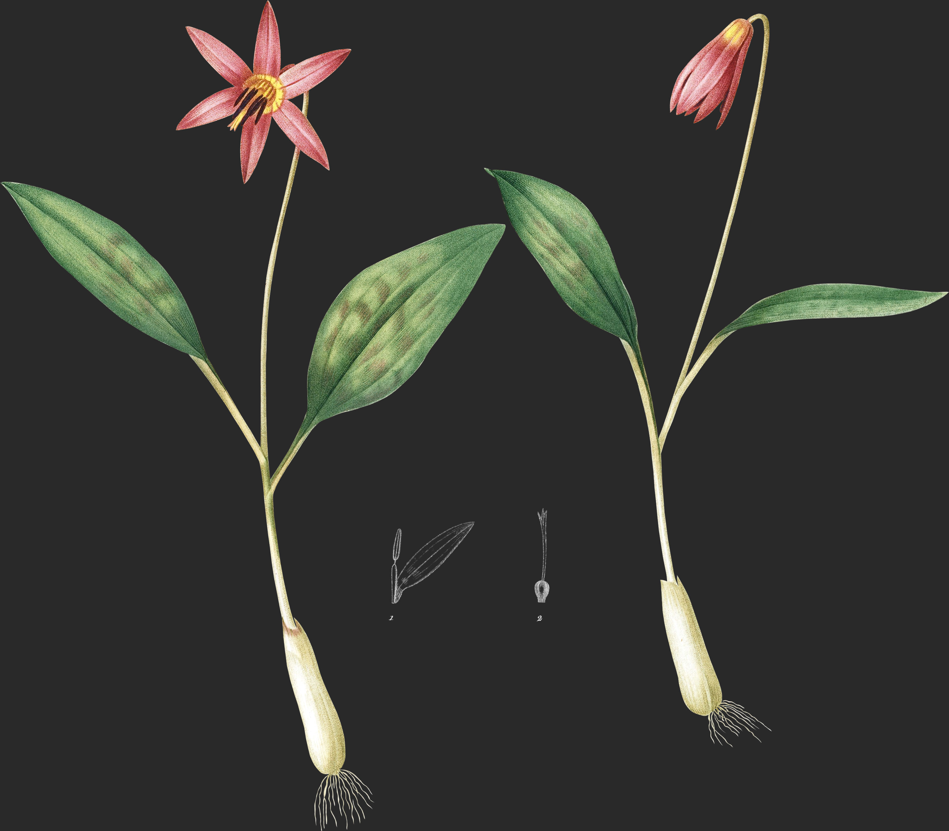 L’Erythrone Dent de Chien croit naturellement dans les montagnes des contrées méridionales de l’Europe et dans la Sibérie. La variété C, remarquable par sa fleur jaune, est indigène des régions les plus froides de l’Amérique septentrionale.