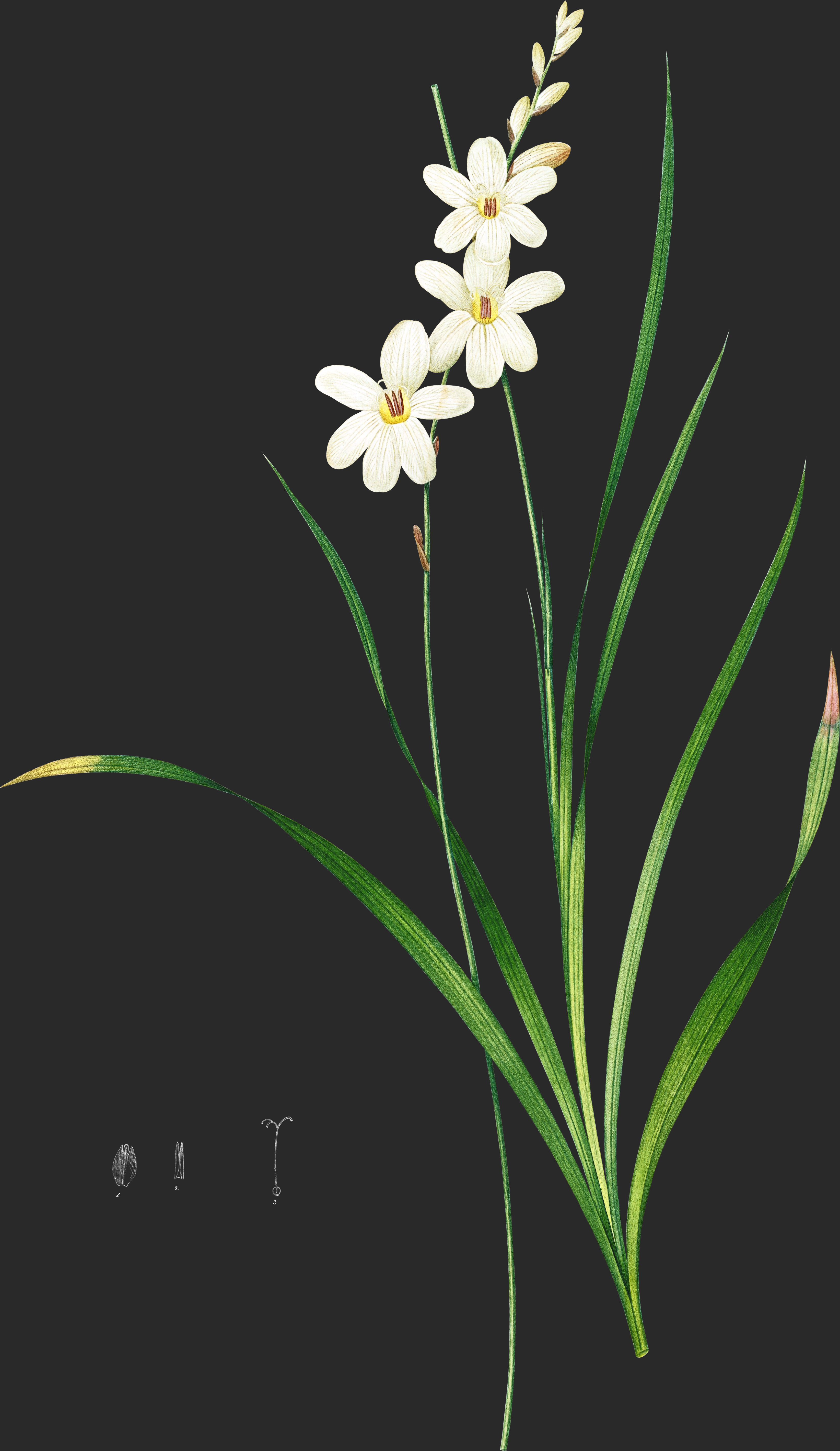 Quoique ce Glayeul ne se ditingue par aucun caractère important de celui que nous avons figuré sous le même nom dans une de nos premières livraisons, comme il en diffère assez par le port pour qu’on puisse le regarder, au premier aspect, comme une espèce bien distinete, nous avons cru devoir en donner ici la figure; mais nous n’en ferons point la description détaillée, dans laquelle nous serions forcés de répéter tout ce que nous avons dit de notre première variété, et nous nous bornerons aux remarques suivantes.