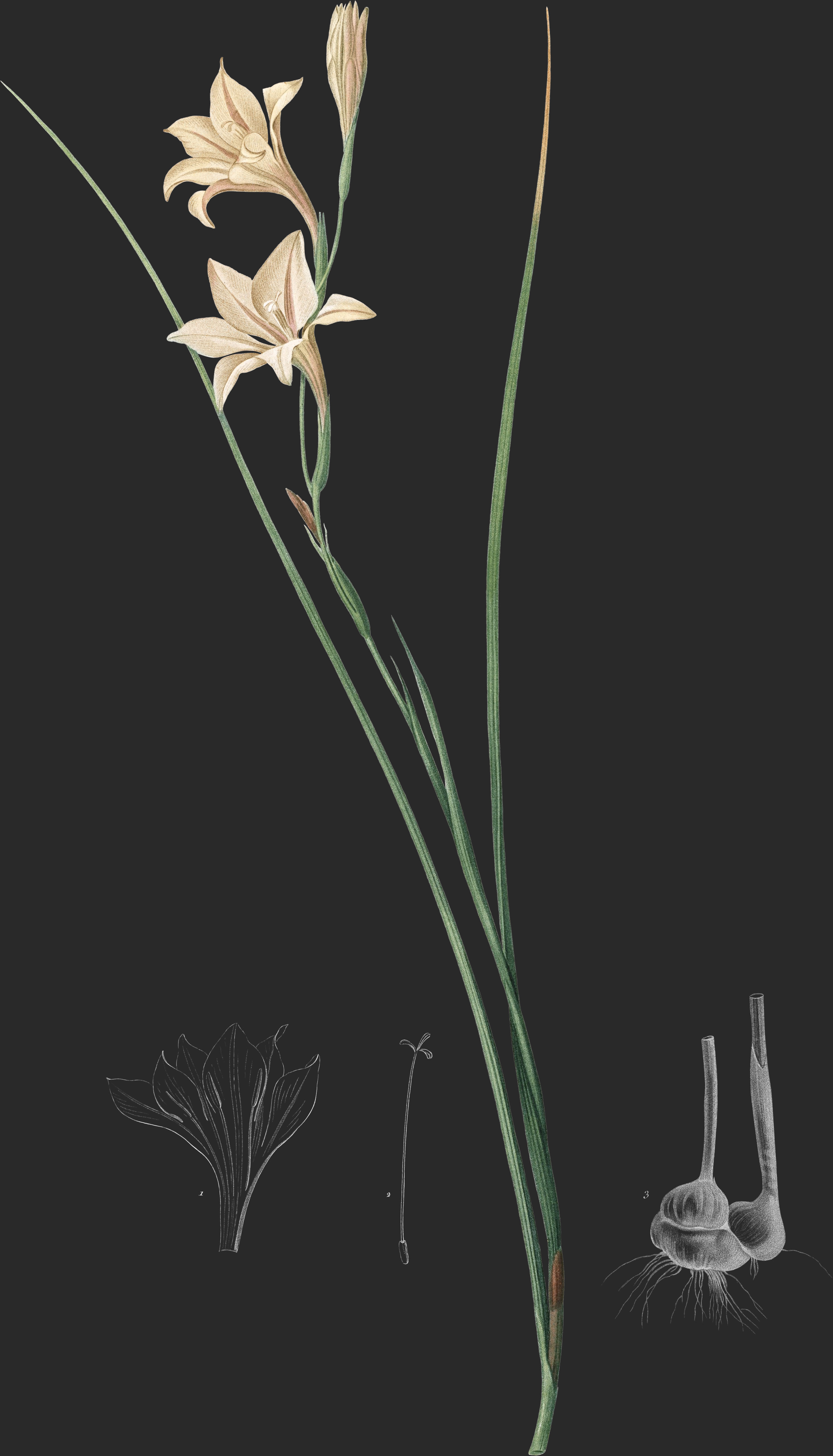 Le Glayeul triste est originaire du Cap-de-Bonne-Espérance; il est cultivé depuis long-temps dans les jardins de botanique: on le tient dans la serre, où il fleurit au printemps.