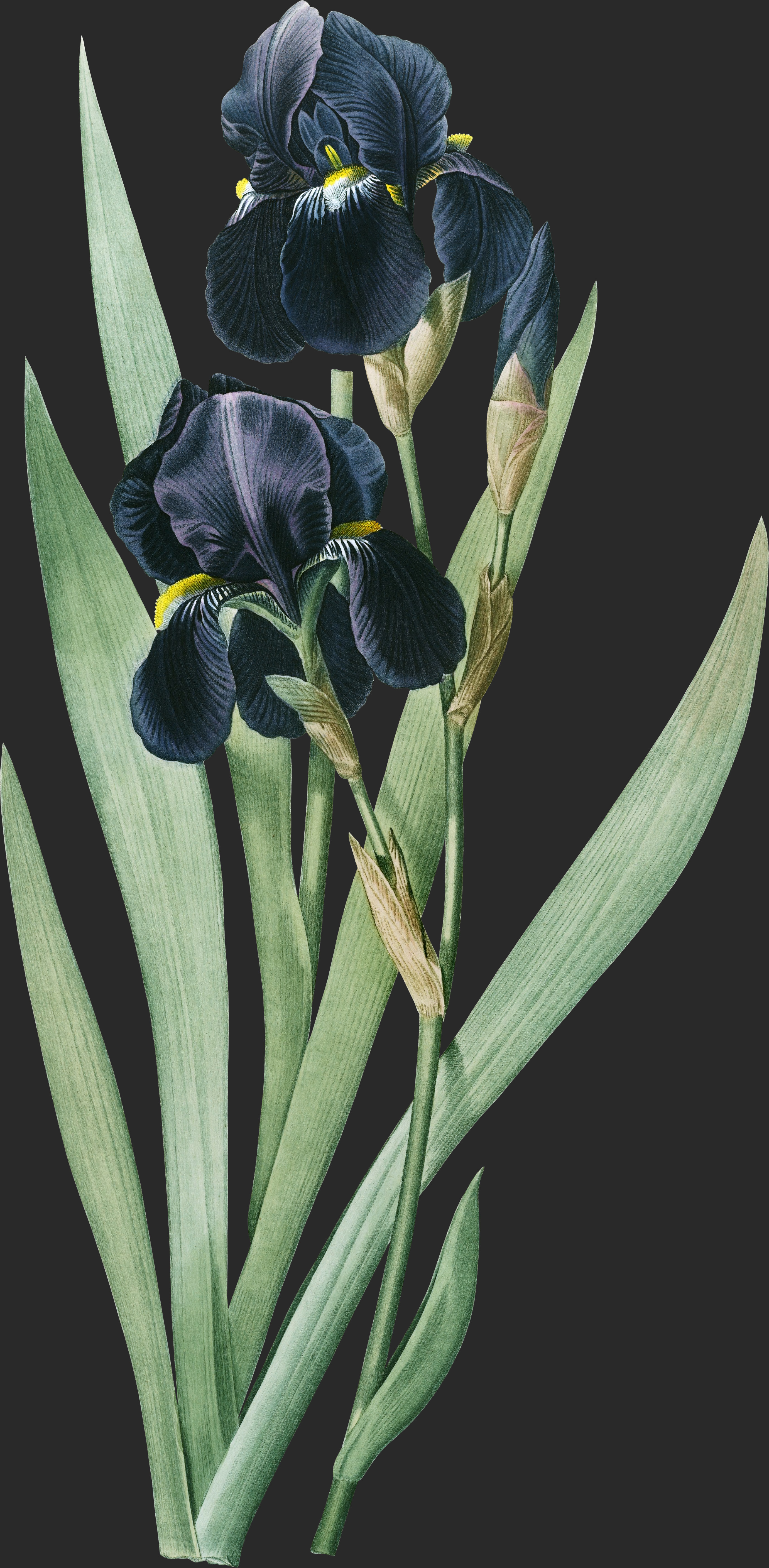 L’Iris Germanique croit naturellement en France, en Allemagne, en Suisse, en Italie et en Barbarie. Dans beaucoup d’endroits on en plante sur les toits et sur le haut des murailles, oi elle se propage ensuite d’elle-même. De toutes les espèces du même genre, c’est la plus anciennement et la plus généralement répandue dans les jardins, dont elle fait un des plus beaux ornements, Sa racine est souvent employée en médecine à la place de celle de l’Iris de Florence. Sa fleur donne la couleur que les peintres connaissent sous le nom de bleu d’Iris.