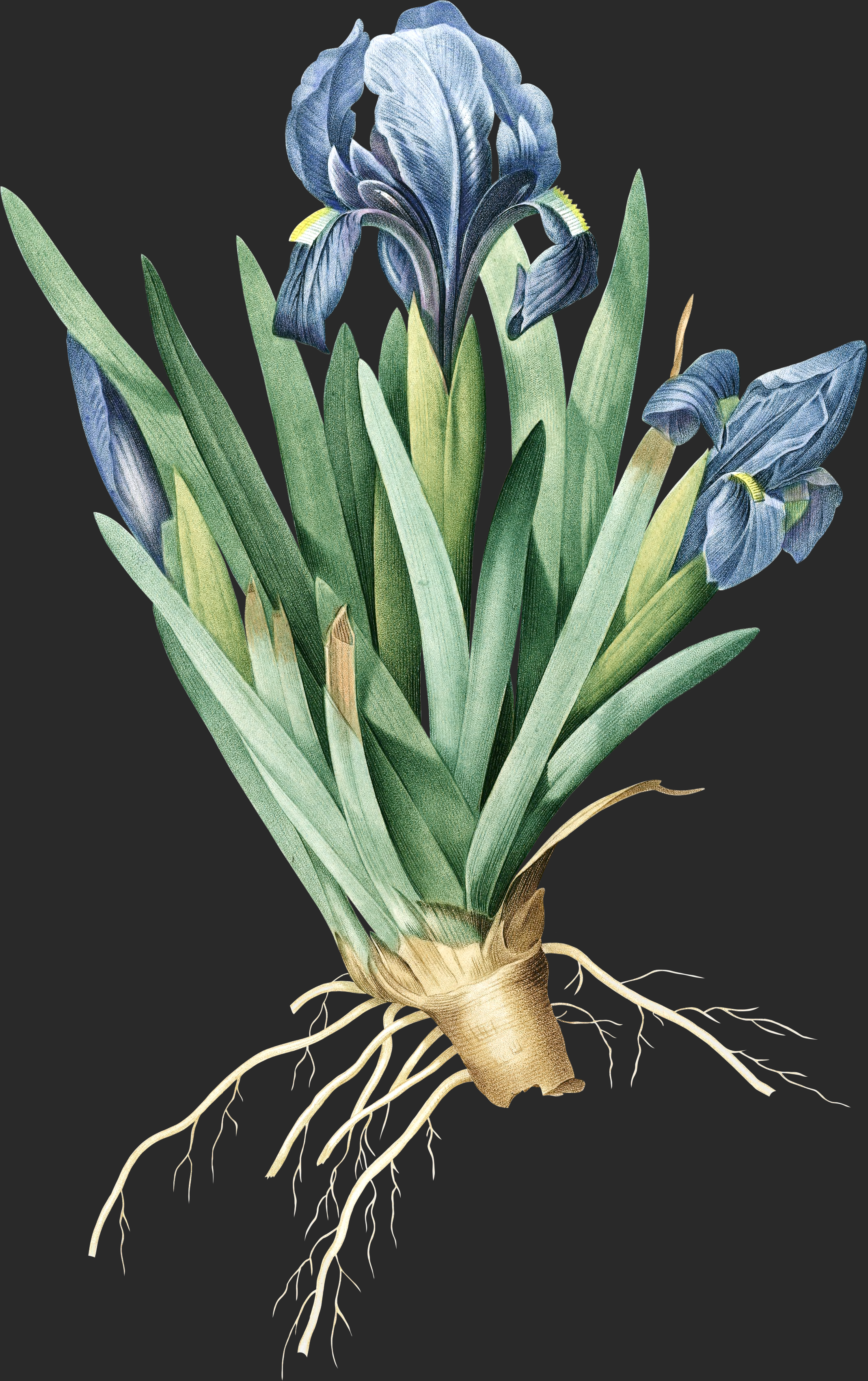 L’on connait plusieurs variétés de cette plante caractérisées la plupart par les différentes conleurs de la fleur. De ces variétés, les deux plus remarquables et les plos généralement cultivées sont celles dont nous donnons ici la figure; l’une est d’un bleu pale, l’autre d’un violet foncé: cette dernière a les onglets des segments de son périgone un peu jaunes. Mais, à part ces différences de couleur, elles n’en présentent aucune autre qui soit constante; c’est tantôt l’une, tantôt l’autre qui acquiert les plus grandes dimensions. La longueur proportionnelle du tabe da périgone oftie les mèmes variations chez toutes les deux. Dans d’autres variétés, la fleur est rougeâtre, ou bien violette, marquée de nervures jaunes; quelquefois elle est blanchâtre. Il en est une assez remarquable qui est caractérisée par sa petitesse, et surtout par l’absence presque complète de la tige. Appartient-elle réellement à la même espèce? c’est ce que nous n’entreprendrons pas de décider, n’en ayant pas vu nous-mêmes des échantillons.