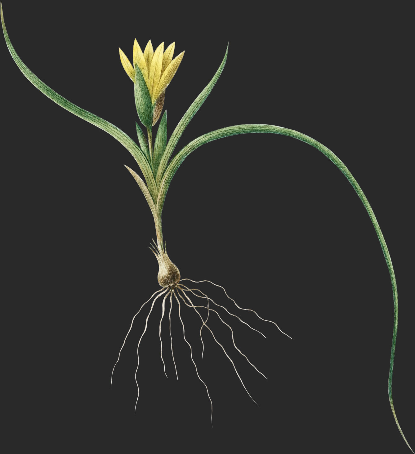 Cette plante appartient à la section du genre Ixia, qui est caractérisée par les étamines, dont les filaments sont pubescents ou velus, et par les stigmates divisés en deux lanières, section frès-naturelle, dont M. Gawler a fait un genre distinet sous le nom de Trichonema. C’est probablement une des espèces que Thunberg a regardées comme des variétés de l’Ixia bulbocode, mais on ne peut la rapporter à aucune de celles dont les auteurs plus récents ont donné la description. Sa bulbe est couverte d’une tunique brune, d’apparence cornée, très-lisse, presque entière. Ses feuilles, les unes radicales, les autres caulinaires, sont courbées en gouttière à leur base, et comprimées en forme de glaive dans leur partie supérieure. Linférieure, ou les deux inférieures, sont fortement arquées sur le dos, et deux ou trois fois plus longues que la tige. Les supérieures sont droites et plus courtes. Sa tige, dont la hauteur varie de deux à huit centimètres, envoie inférieurement quelques rameaux ou pédoncules alternes, simples ou réunis deux à deux, au-dessus desquels elle est nue, triangulaire et munie sur deux de ses angles d’un rebord membraneux, brun, étroit et finement dentelé. Les rameaux, qui sont en général très-courts, et qu’on peut regarder comme de simples pédoneules, sont également nus et triangulaires. Les fleurs sont terminales, solitaires, assez grandes, d’un jaune verdâtre, entourées par une spathe à deux valves presque opposées, lancéolées, concaves, un peu obtuses, dont la supérieure est membraneuse sur les bords, et marquée de stries ou ponctuations brunes et nombreuses. Les segments du périgone sont lancéolés, pointus, peu étalés, et deux fois plus longs que les étamines. Celles-ci ont leurs filaments velus à la base. Les anthères sont très-grandes. Lovaire est ovoïde, un peu anguleux. Il supporte un style un peu plus court que les étamines, terminé par trois stigmates, divisés chacun en deux lanières filiformes fort courtes. Nous n’avons pas vu le fruit.