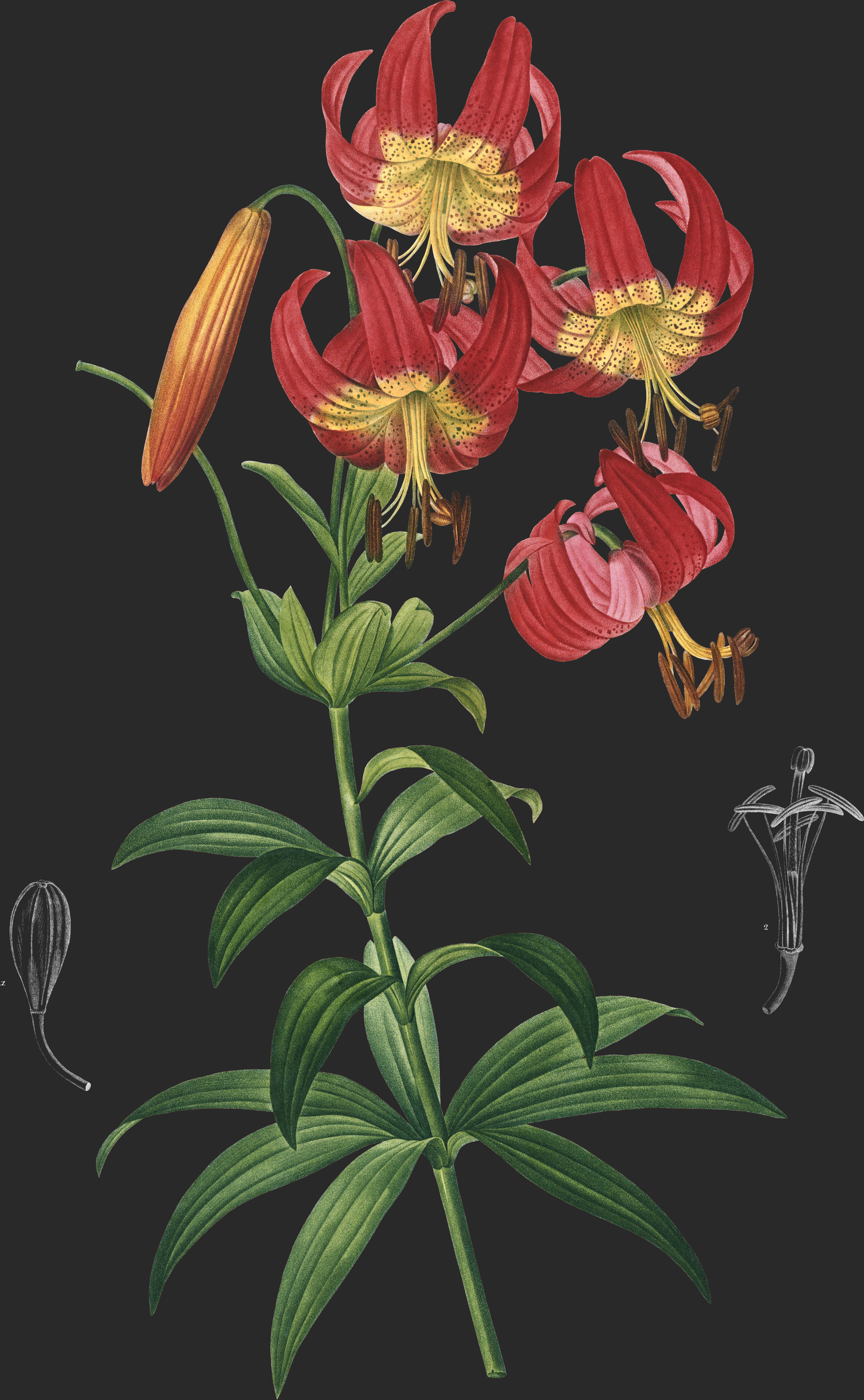Le Lis superbe est indigène de l’Amérique septentrionale ♃.