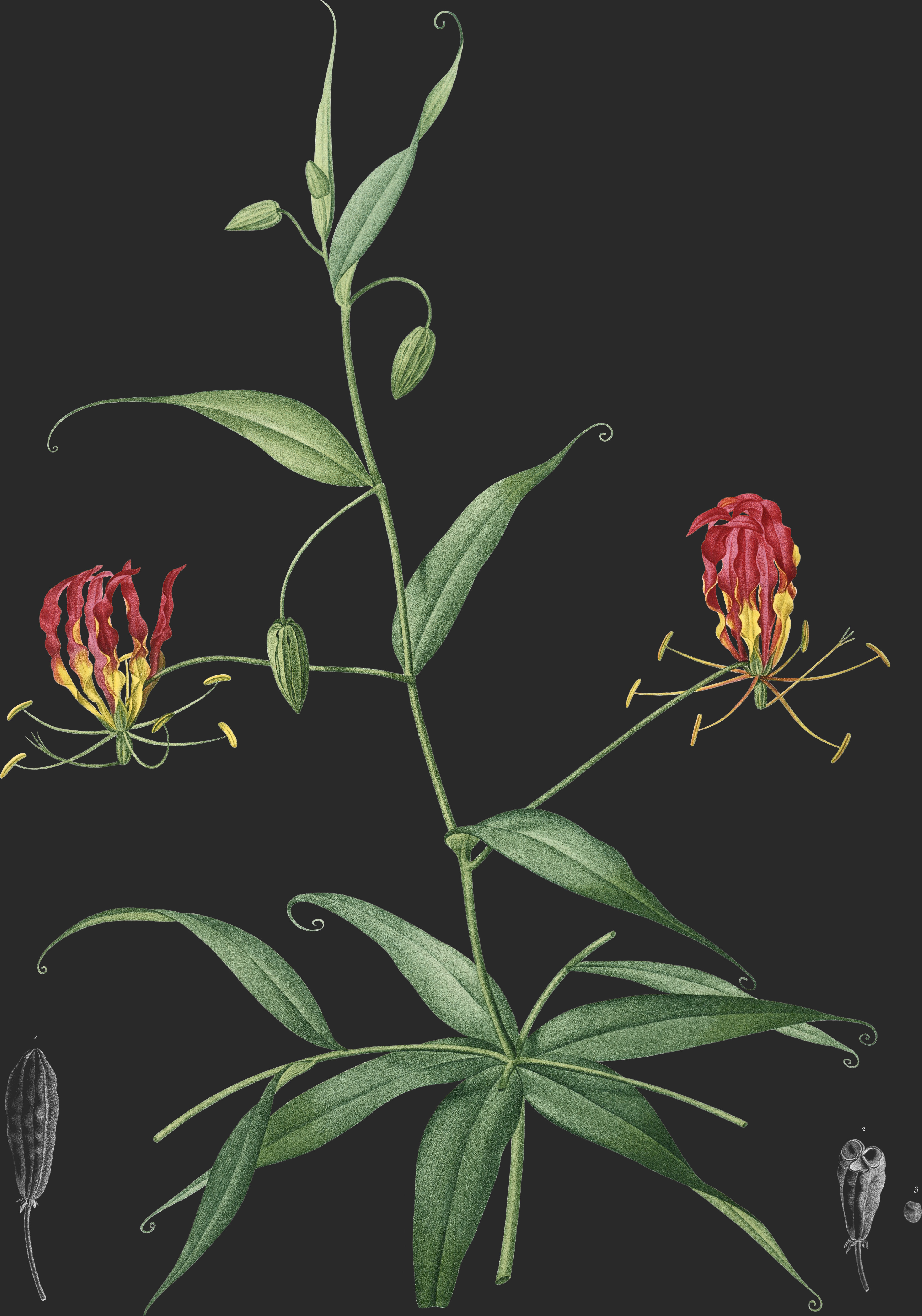 La Méthonique superbe, appelée Glorieuse superbe et Superbe da Malabar, a, de tout temps, excité l’admiration des naturalistes et des voyageurs, comme l’attestent les noms qu’ils lui ont donnés. Ses feuilles roulées en vrille à leur sommet, ses fleurs conleur de feu, dont les pétales ondulés se redressent avec élégance, ont particalièrement fixé l’attention des observateurs.