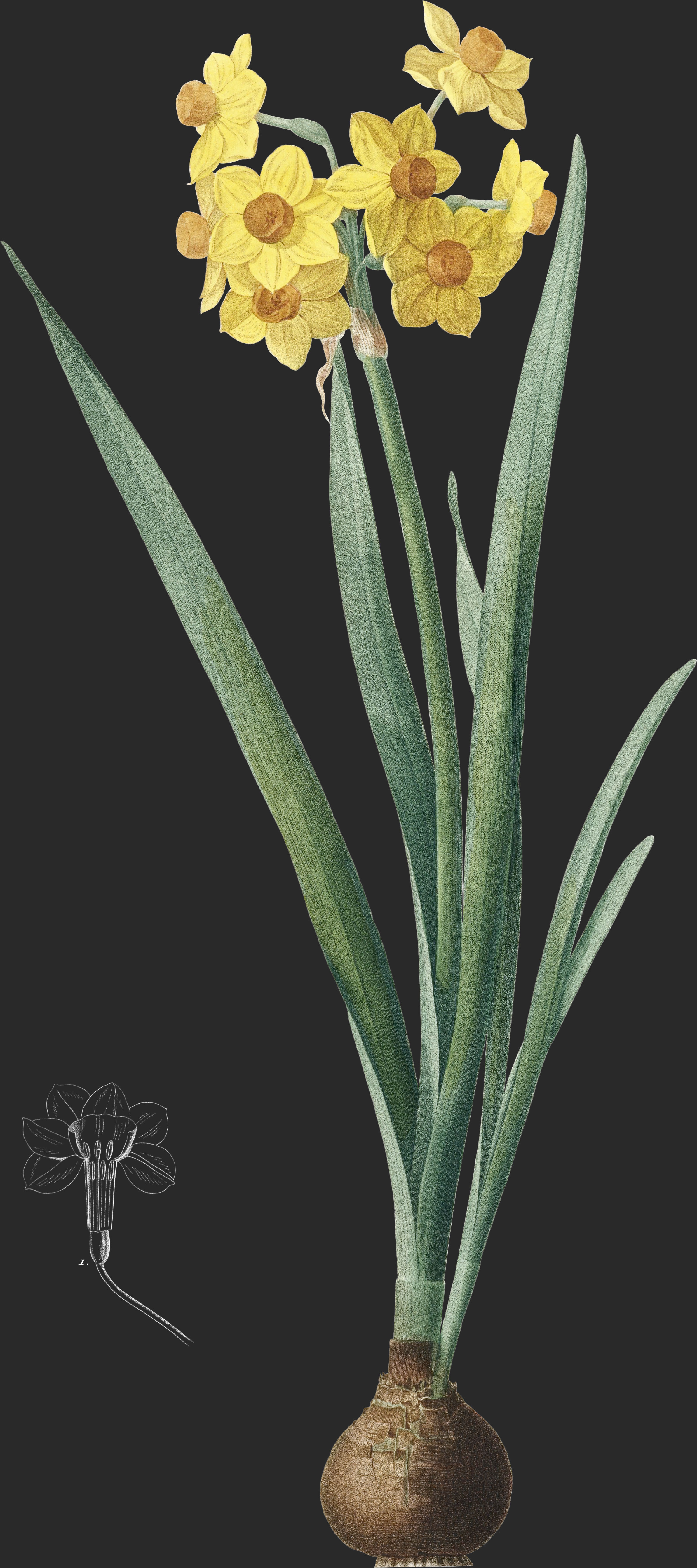Le Narcisse à plusieurs fleurs croit naturellement dans le midi de la France, de l’Espagne, du Portugal, dans la Barbarie et l’Orient: il aime de préférence les prairies humides.