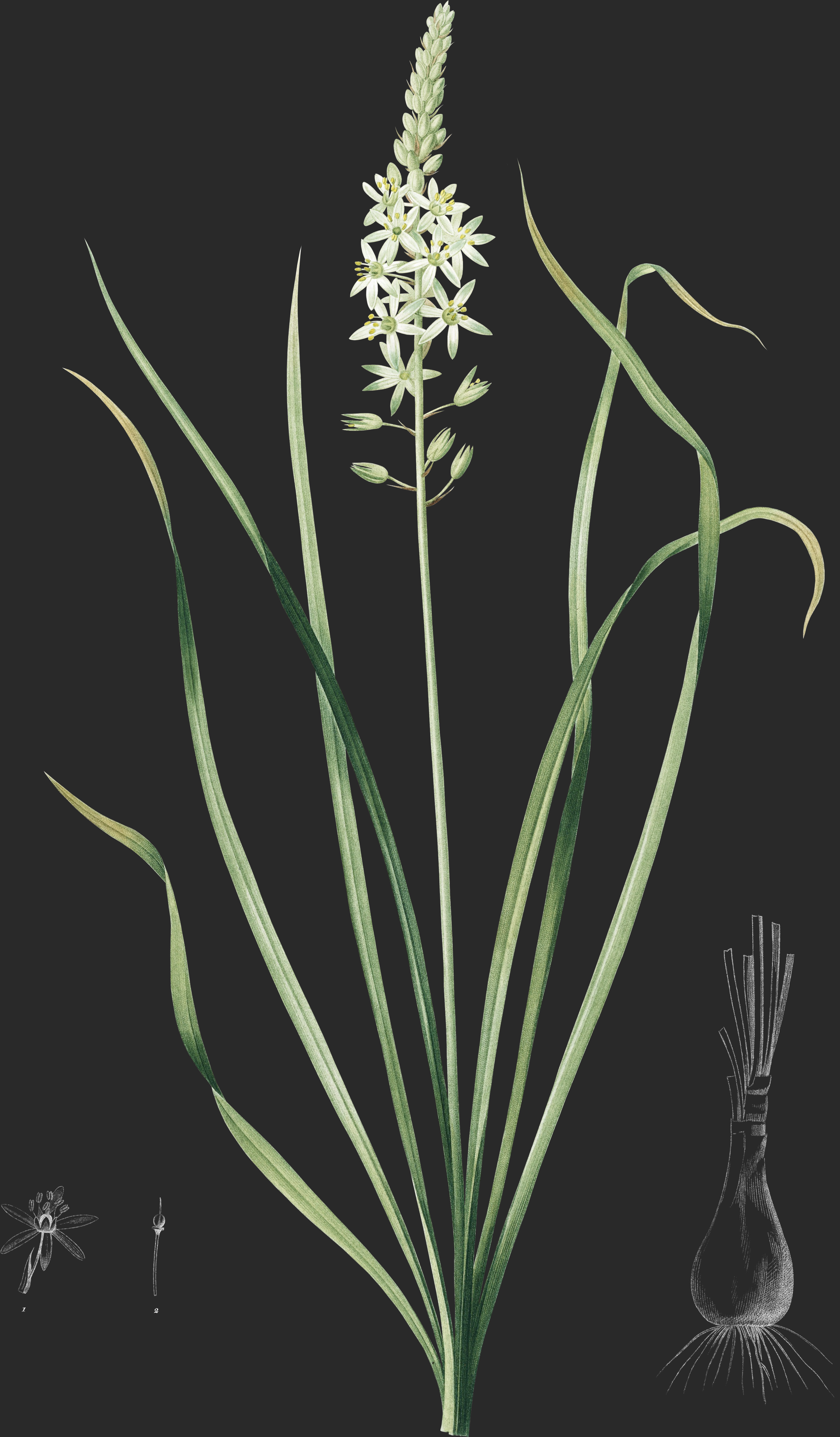Aiton, et d’après lui, plusieurs auteurs ont cru quon avait jusqu’ici confondu deux espèces sous le nom d’Ornithogale des Pyrénées; mais les caractères d’après lesquels on prétend les distinguer sont si peu importants, que, dans le plus grand nombre des cas, on ne peut déterminer & laquelle des deux espèces d’Aiton appartiennent et les échantillons recueillis dans divers pays et les figures données par les auteurs. C’est ce qui fait que je n’ai pas même osé les distinguer comme variétés.