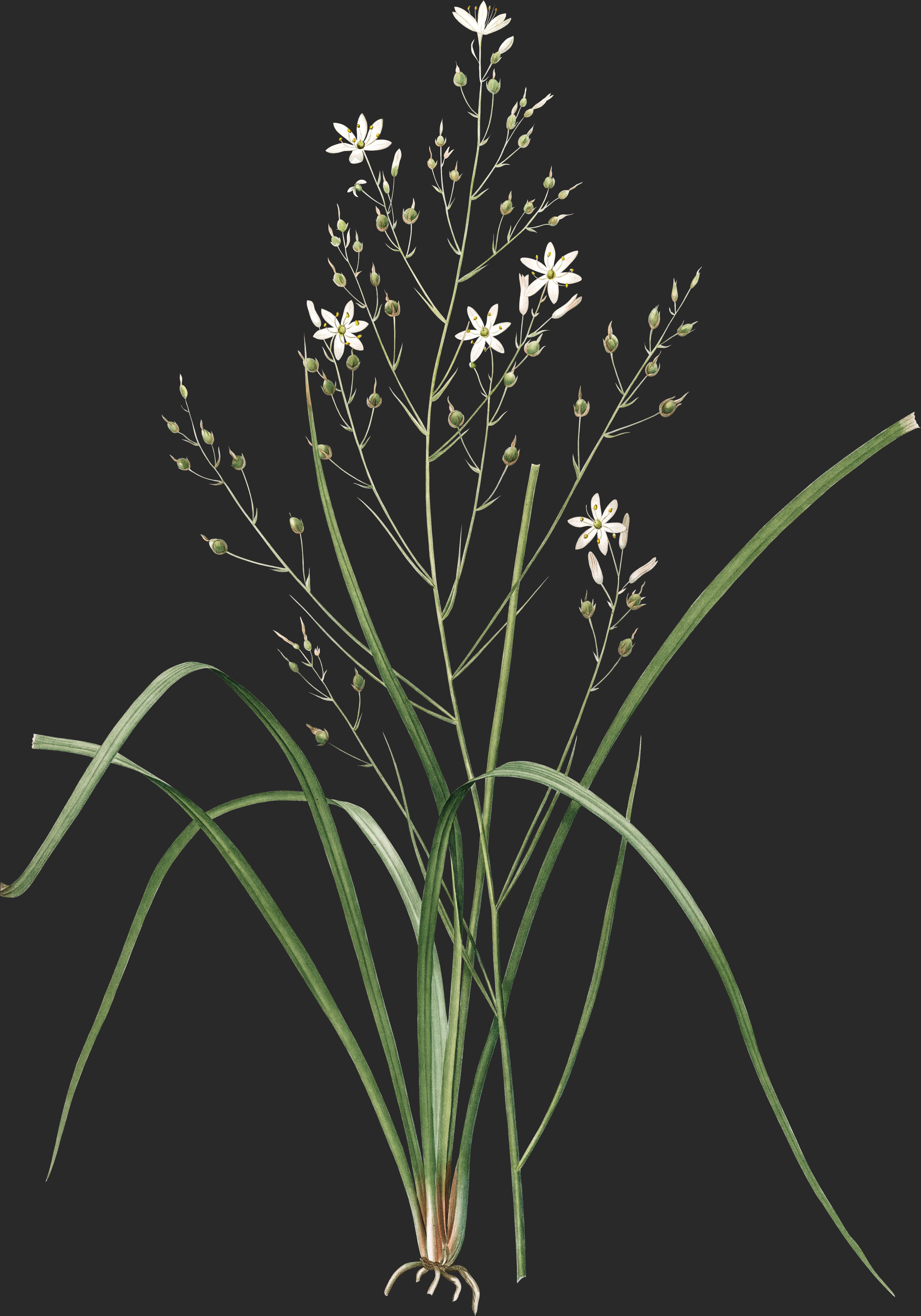 Le périgone est divisé jusqu’à sa base en six segments blancs, lancéolés, concaves, obtus, longs d’un centimètre et étalés en manière de roue.