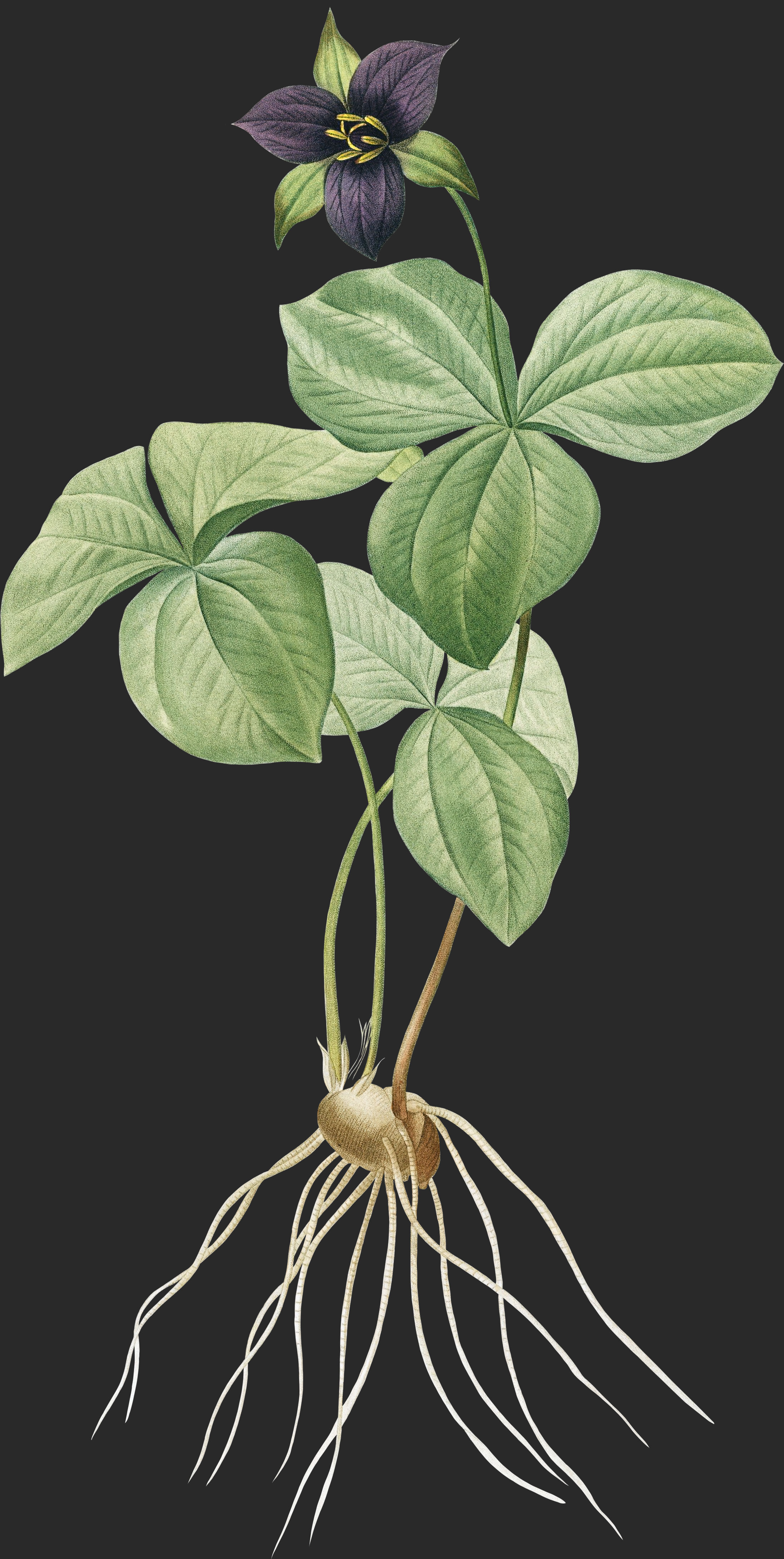 Le Trillium rhomboidal croit dans les montagnes devées de l’Amérique septentrionale; dans la Caroline, selon Michaux; dans la Virginie, selon Linné; en Canada, d’après Cornuti. ♃.