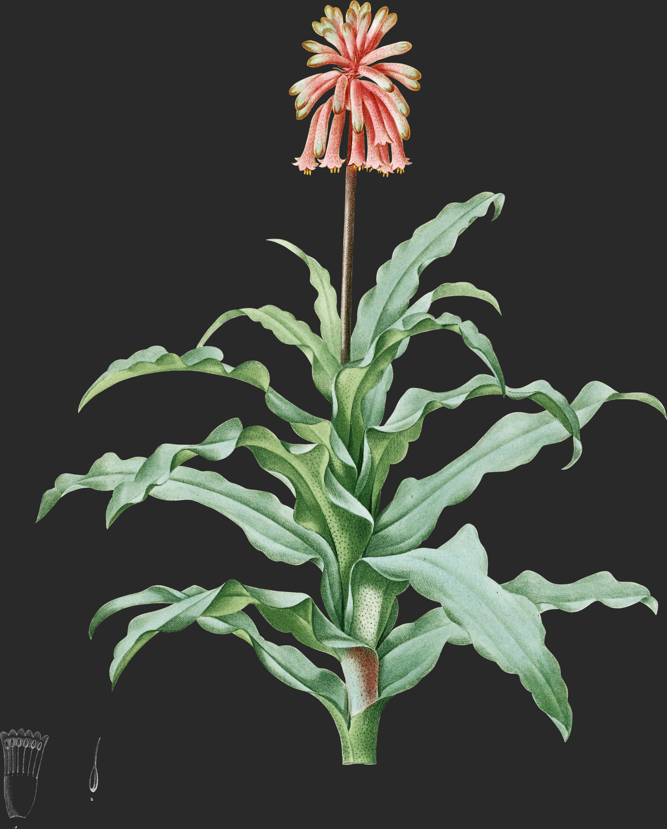 Le Veltheimia glauque est originaire du Cap de Bonne-Espérance. On le cultive dans les serres de Malmaison. Il ne devient pas aussi grand que le Velheimia capensis.