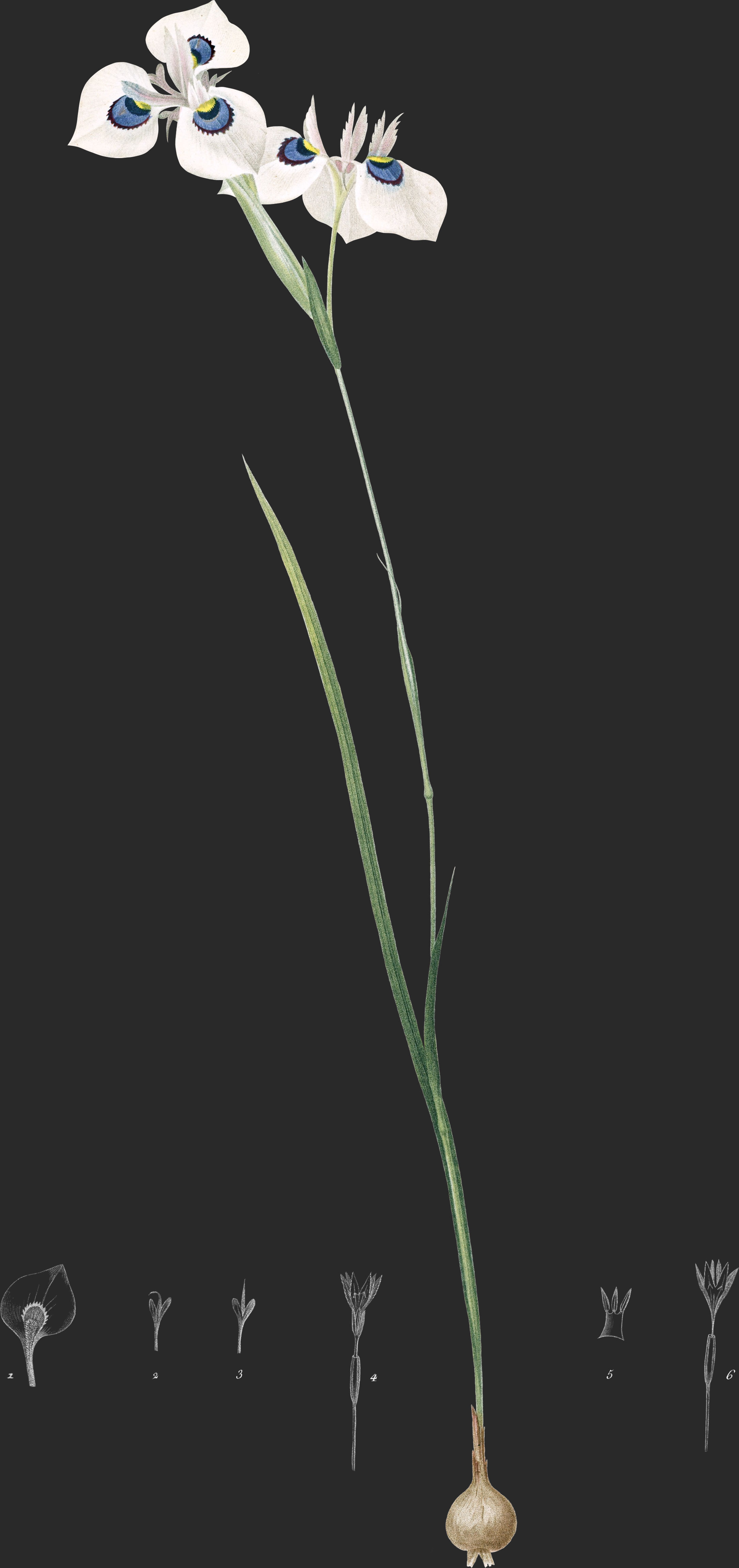 Les Vieusseuxies diffèrent des Iris, comme les Galaxia des Ixia, et les Sisy-rinchium des Morcea, c’est-a-dire, parce que leurs étamines sont réunies en un seul faisceau, au lieu d’être distinetes et séparées; le caractère de ce genre se trouve donc facilement exprimé par cette phrase: trois étamines monadelphes et trois stigmates en forme de pétales.