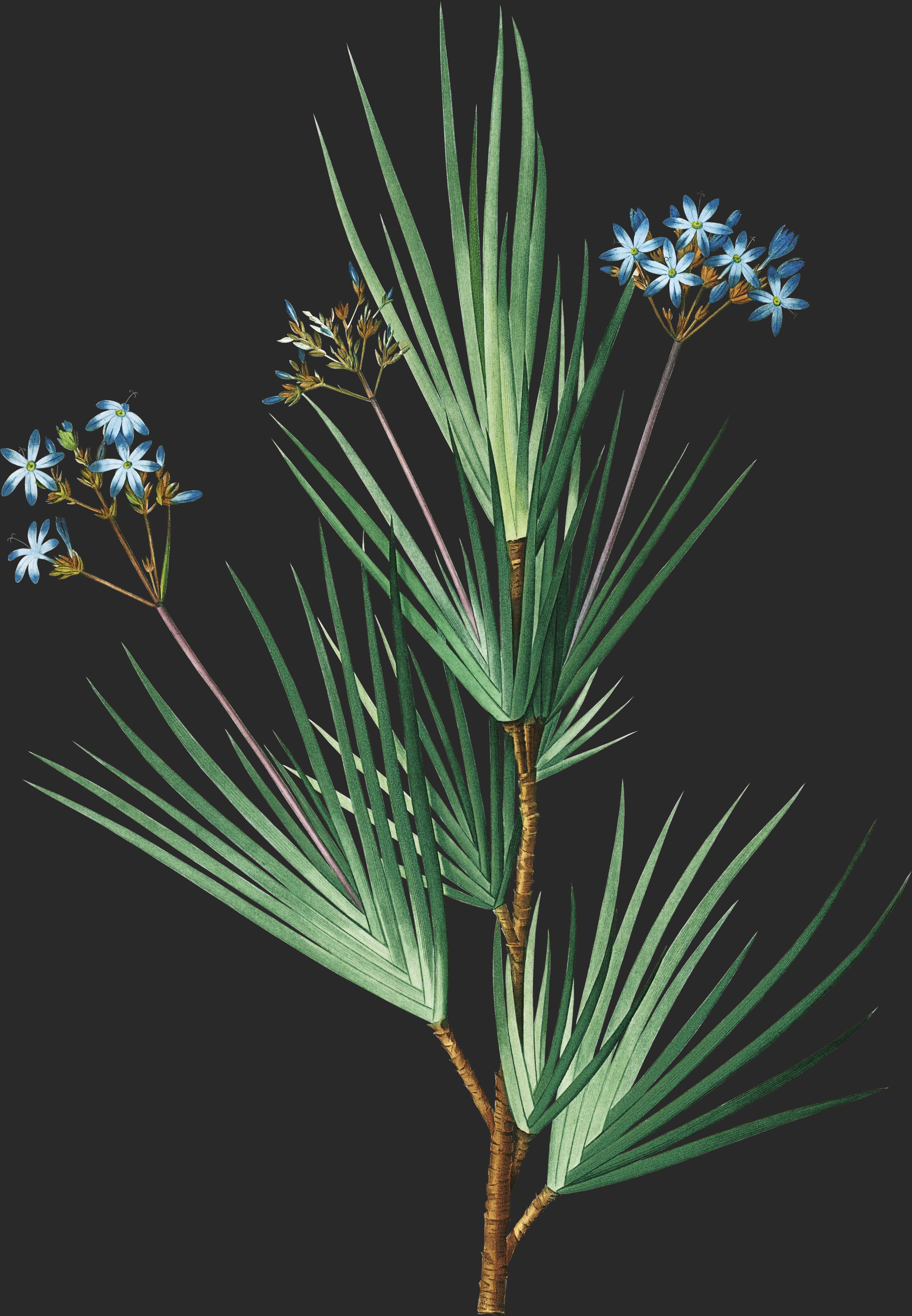 Les fleurs sortent d’entre les feuilles, en corybe, dont le pédoneule allonge est comprimé, lisse, non strie, à deus tranchants. Ce pédoncule produit plusieurs rameaux triangalaires, inégaus, solitaires ou géminés, dichotomes et floriférés à leur sommet. Une feuille subulée est placée sous l’aisselle du premier rameau du corymbe; une très-petite écaille brune accompagne les rameaus partiels. Les fleurs sont verticales, et la plupart géminées; elles sont maintenues chacune par une spathe de plusieurs valves qui sont serrées contre Je tube du périgone. Cette spathe est de quatre valves alternes, opposées, en-tières, engainantes. La plas intérieure de ces valves est la plus roide; la seconde est en grande partie membraneuse, et les deux dernières sont tout-à-fait sèches et membraneuses.